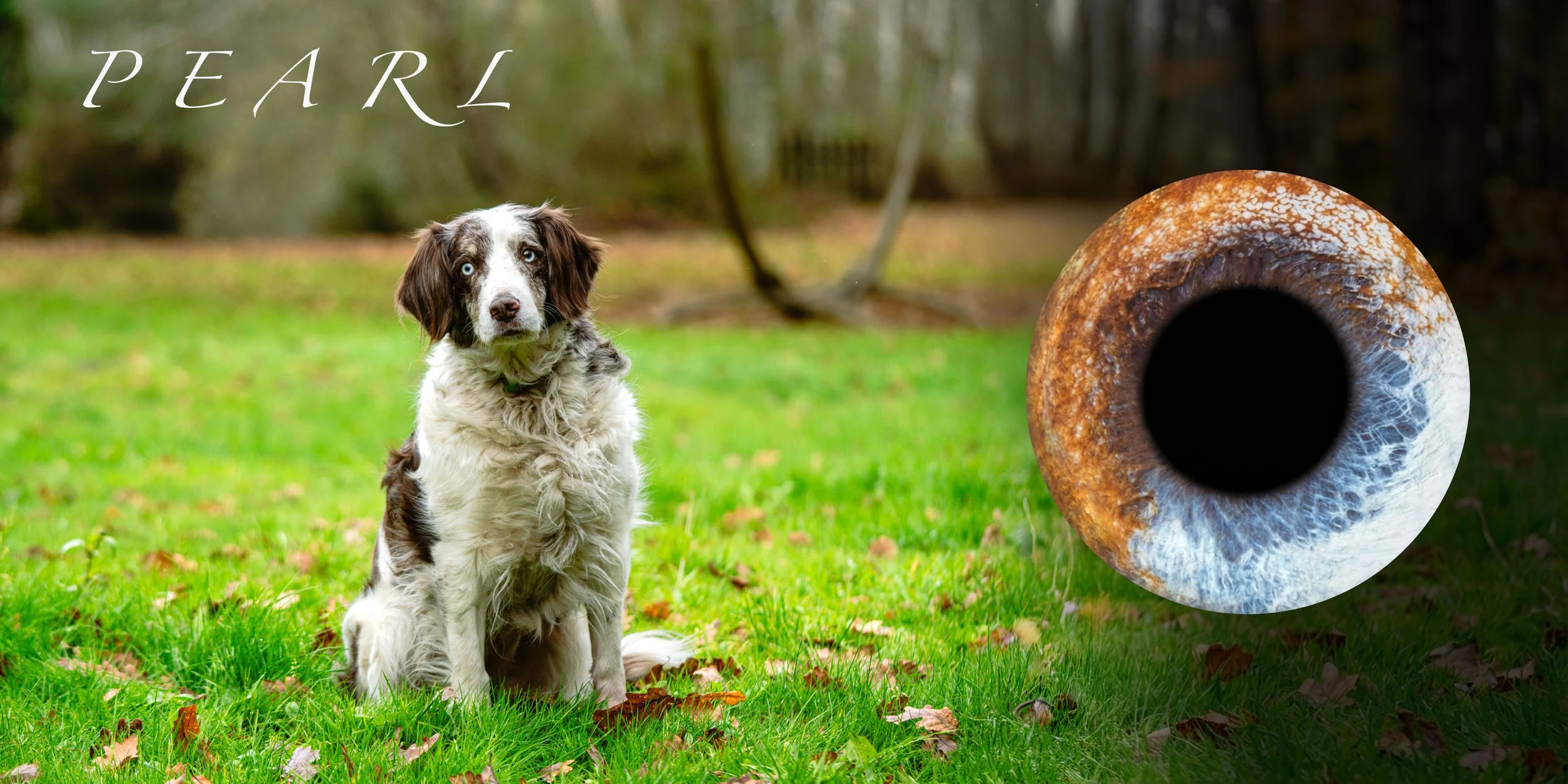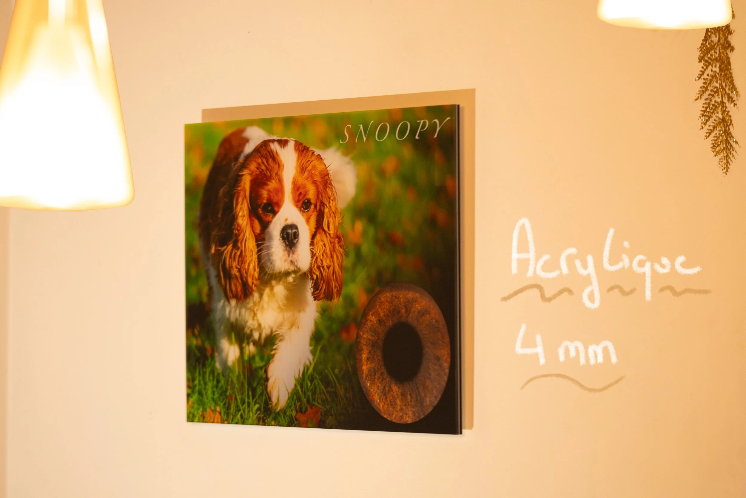 Un tableau personnalisé qui associe le portrait de votre compagnon à la beauté unique de son iris.